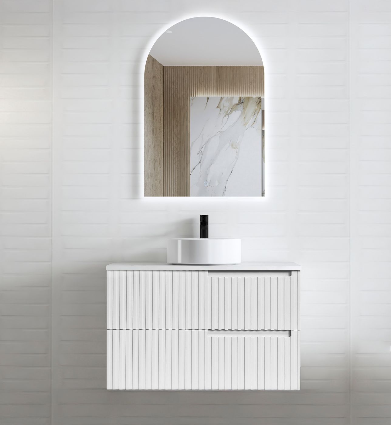 Noosa 900mm Satin White Wall Hung Vanity
