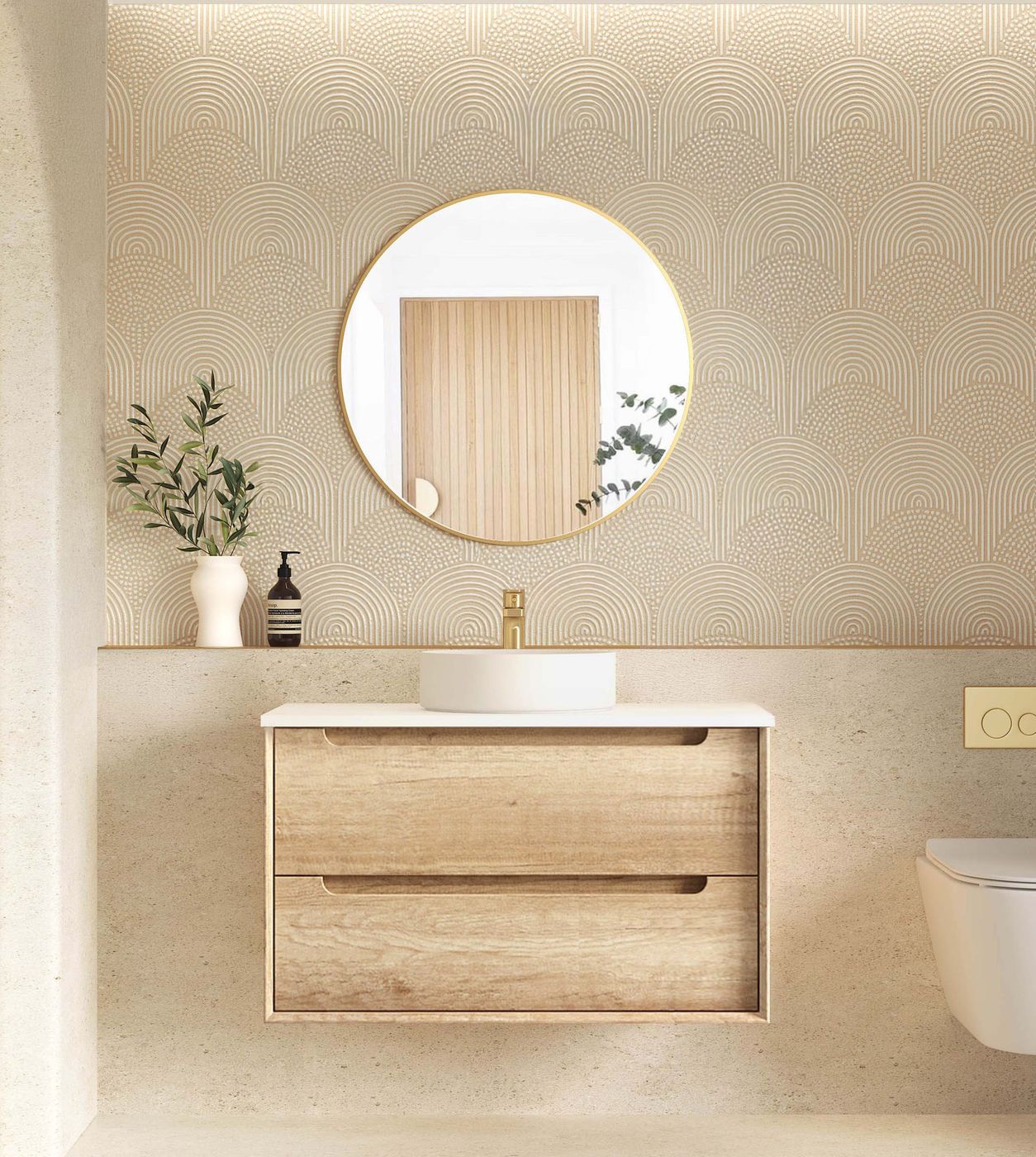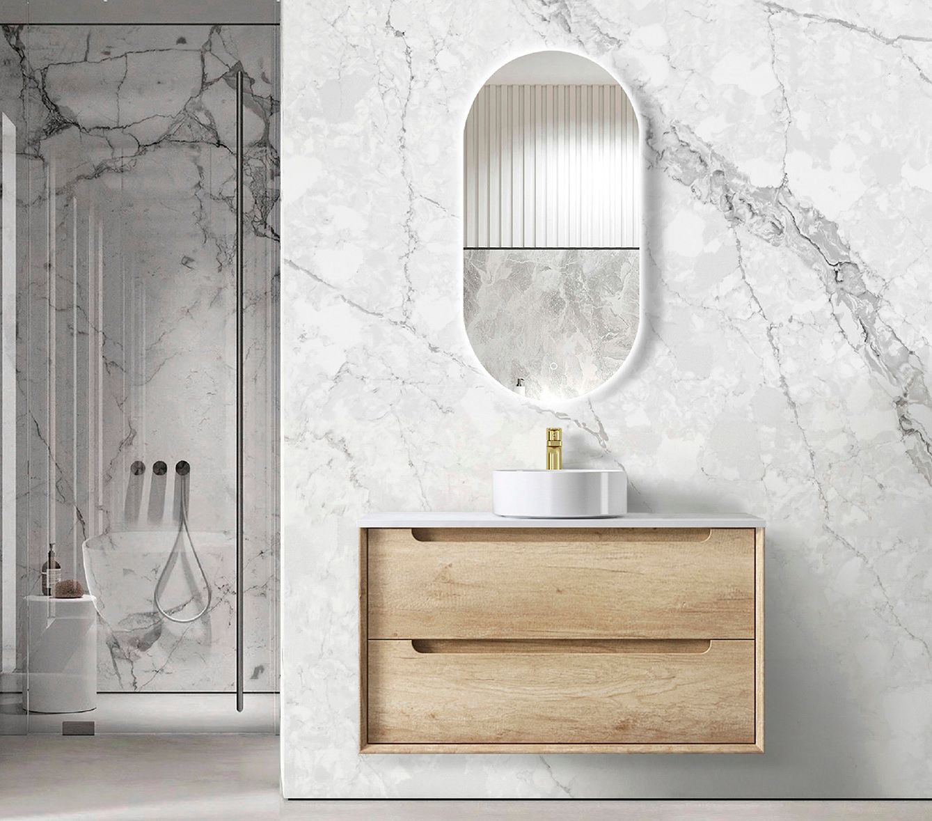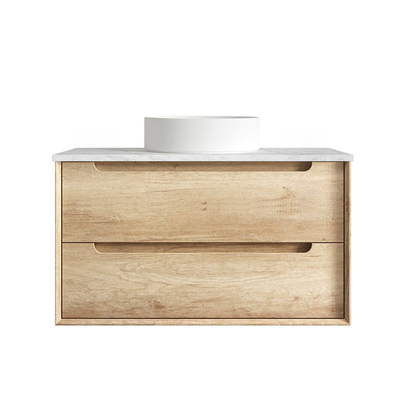 • Byron 900mm Natural Oak Wall Hung Vanity with Cloudy Carrara Top