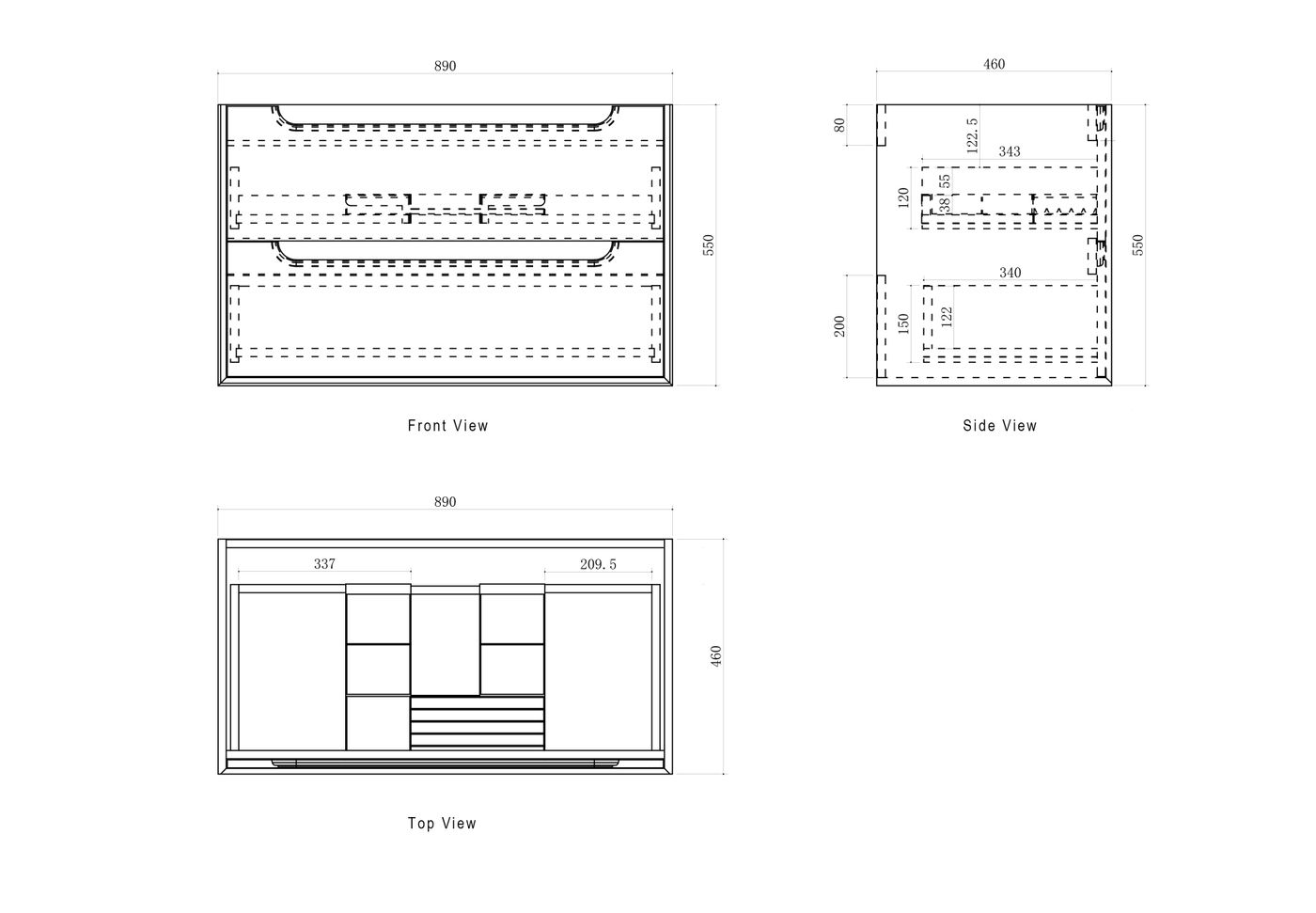 Dimensions                            890x460x550mm