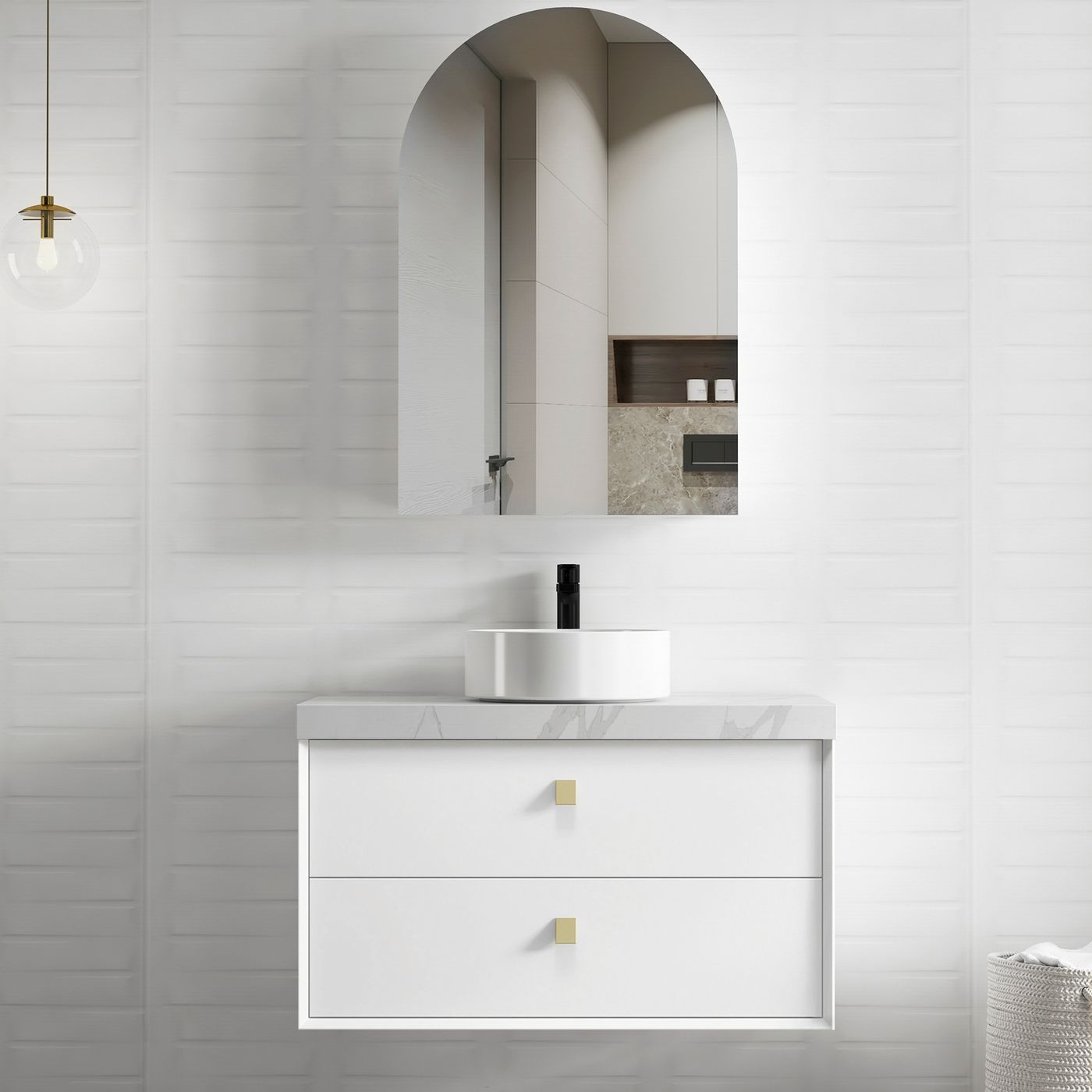 Boston 900mm Satin White Wall Hung Vanity with Matte White Top