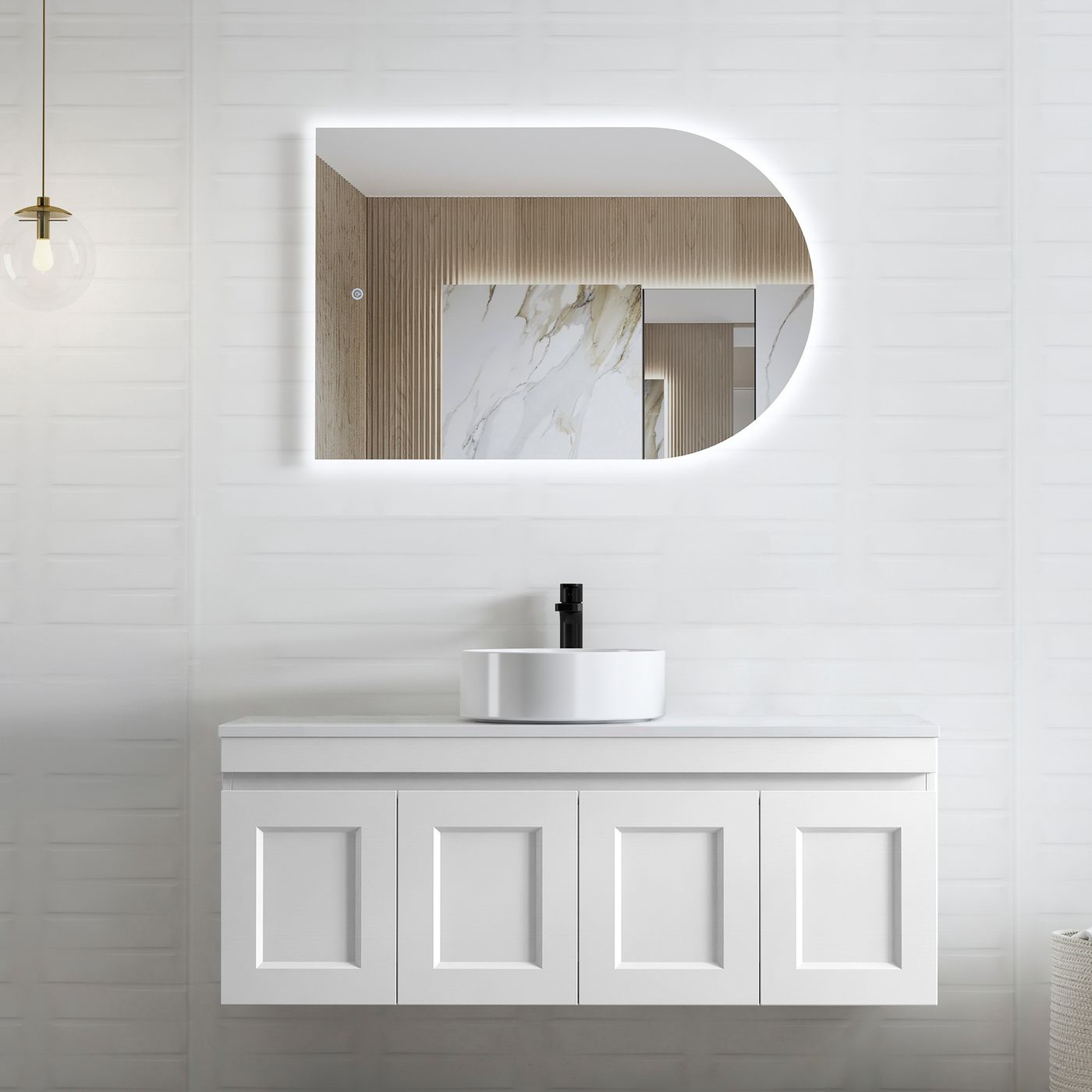 Hampton Mark II 1200mm Satin White Wall Hung Vanity with Mont Blanc Top 10TH
