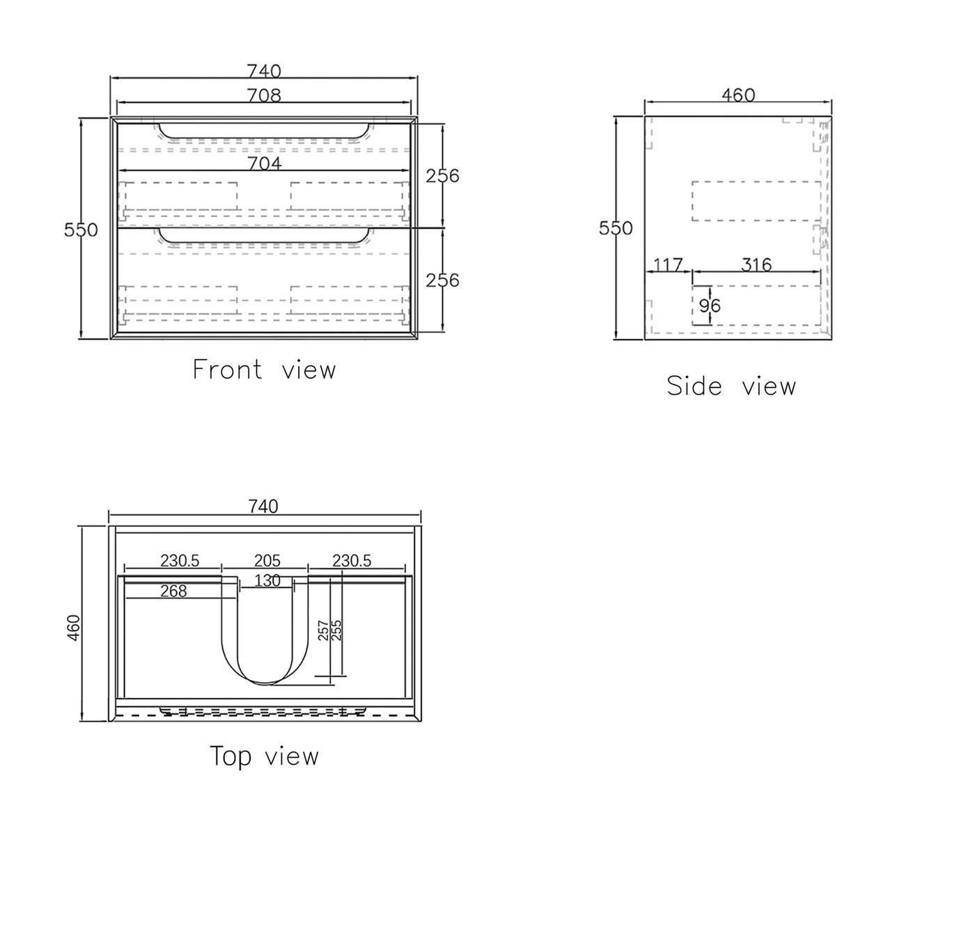 • Byron 750mm Black Oak Wall Hung Vanity with Empire Black Top 12TH