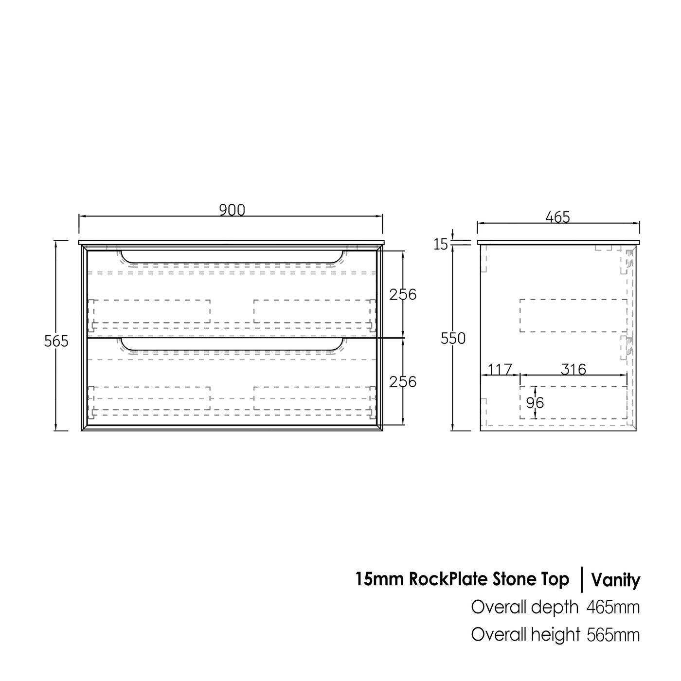 • Byron 900mm Black Oak Wall Hung Vanity with Empire Black Top 10TH