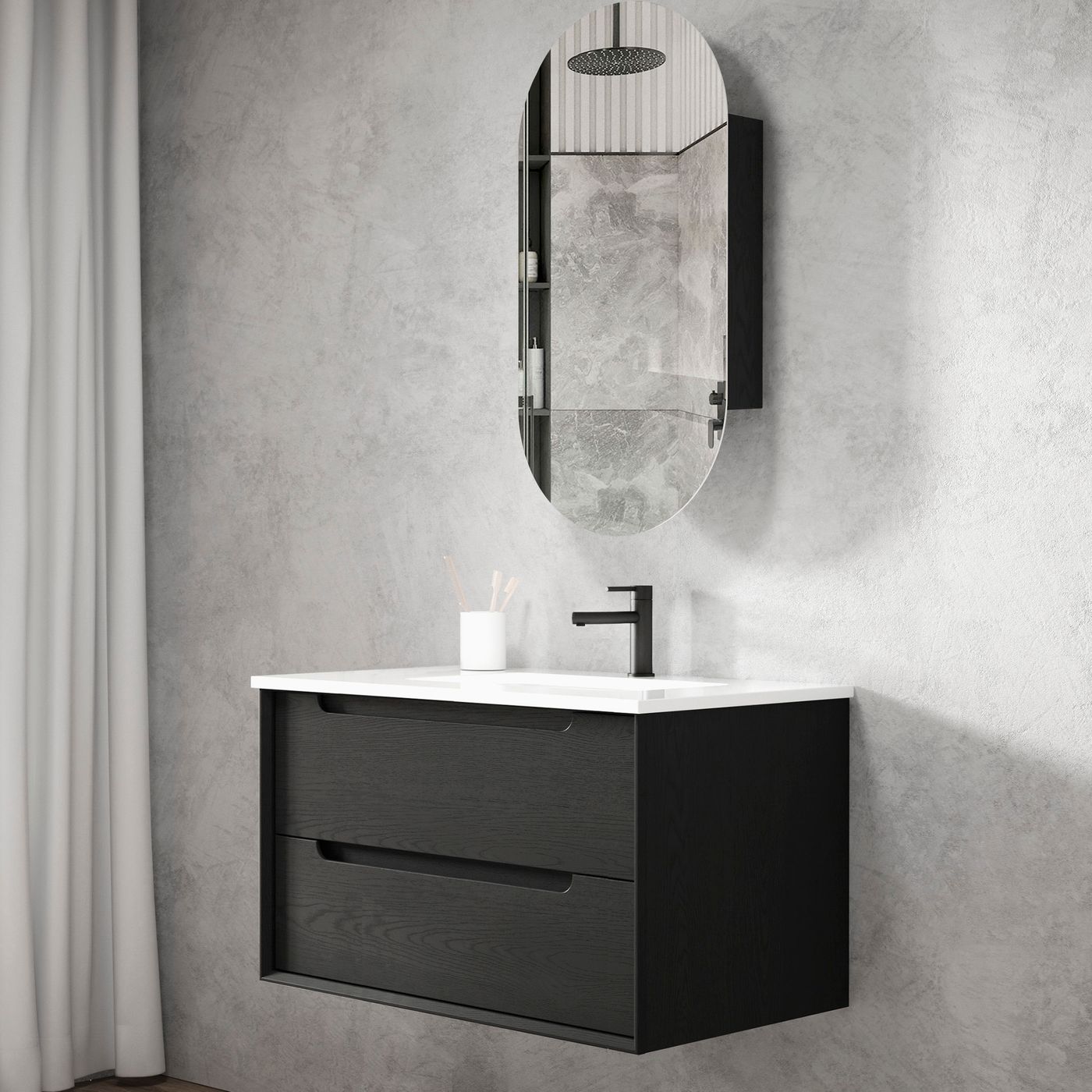 Byron 900mm Black Oak Wall Hung Vanity