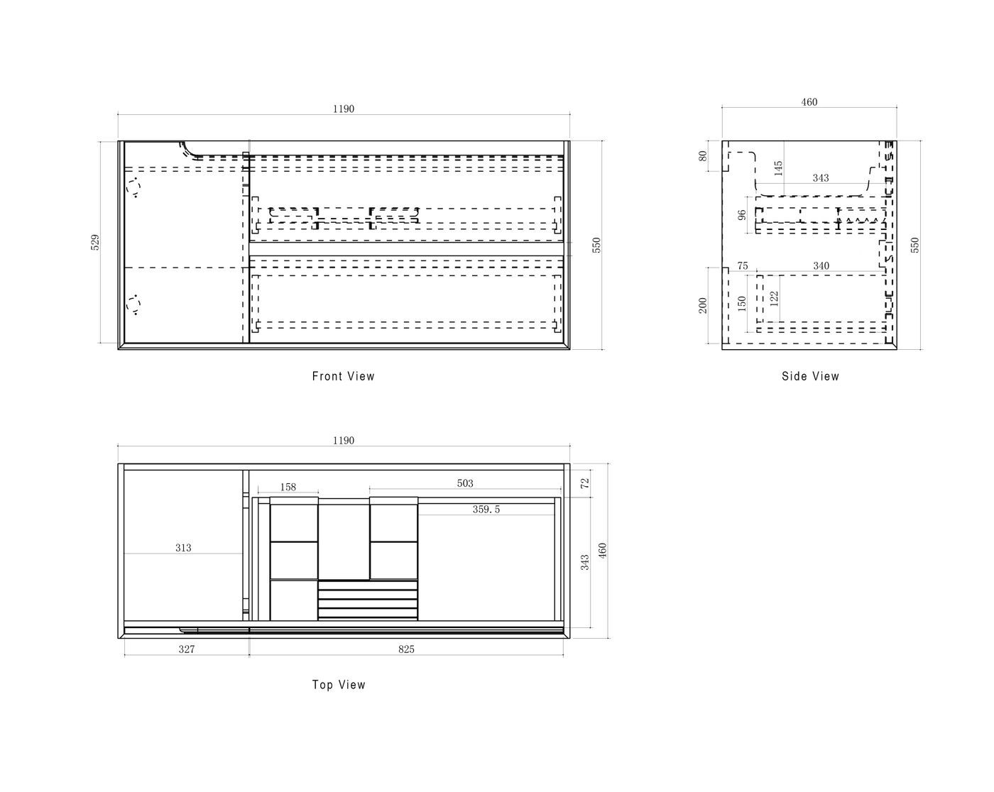 Dimensions 1190x460x550mm