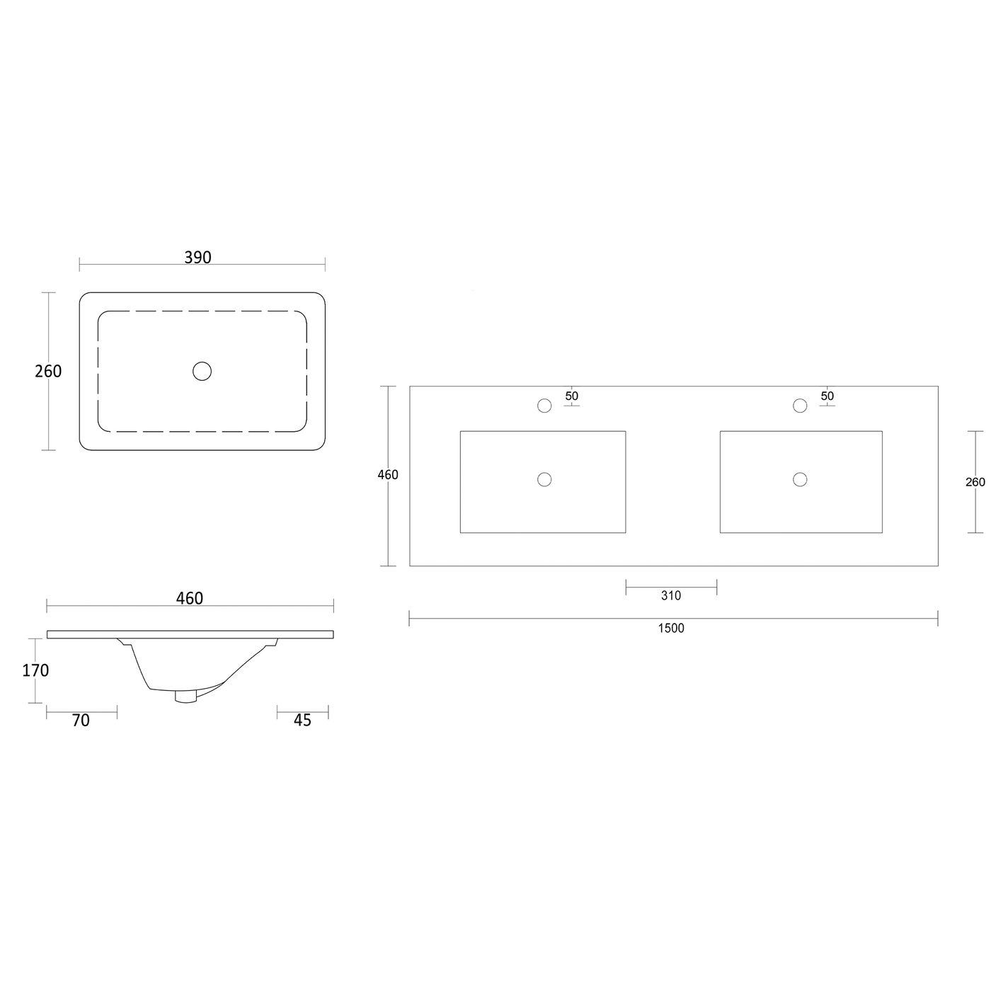| Rock Plate with undermount basin | 1550 | 510 | 220 | 36.4 |