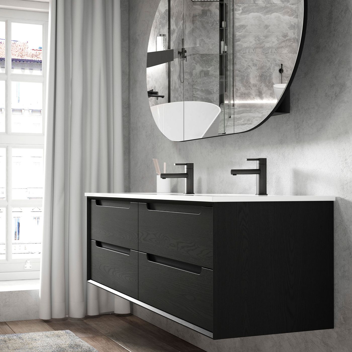 Byron 1200mm Black Oak Wall Hung Vanity Double Bowl