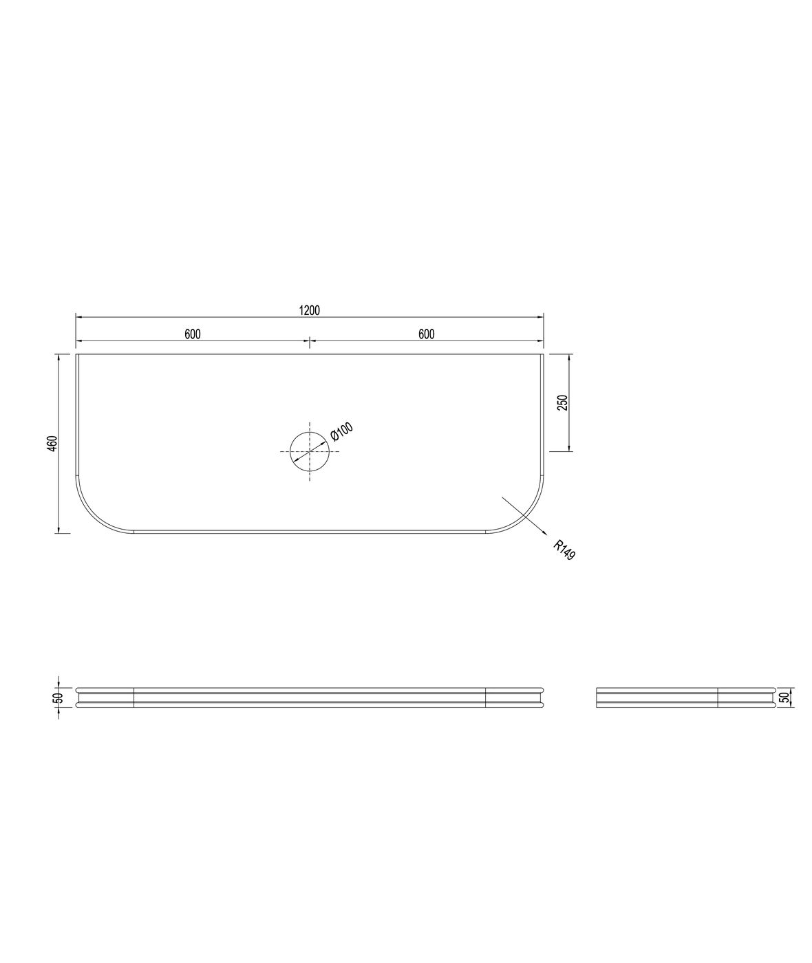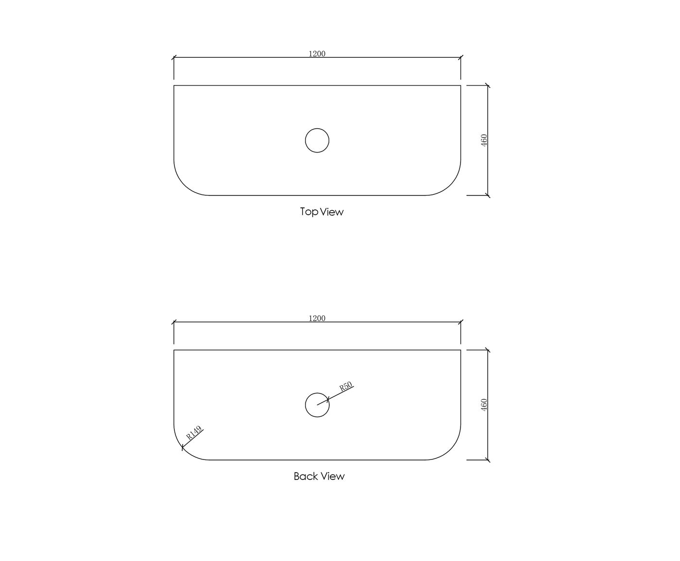 Dimensions 1200x460x450mm