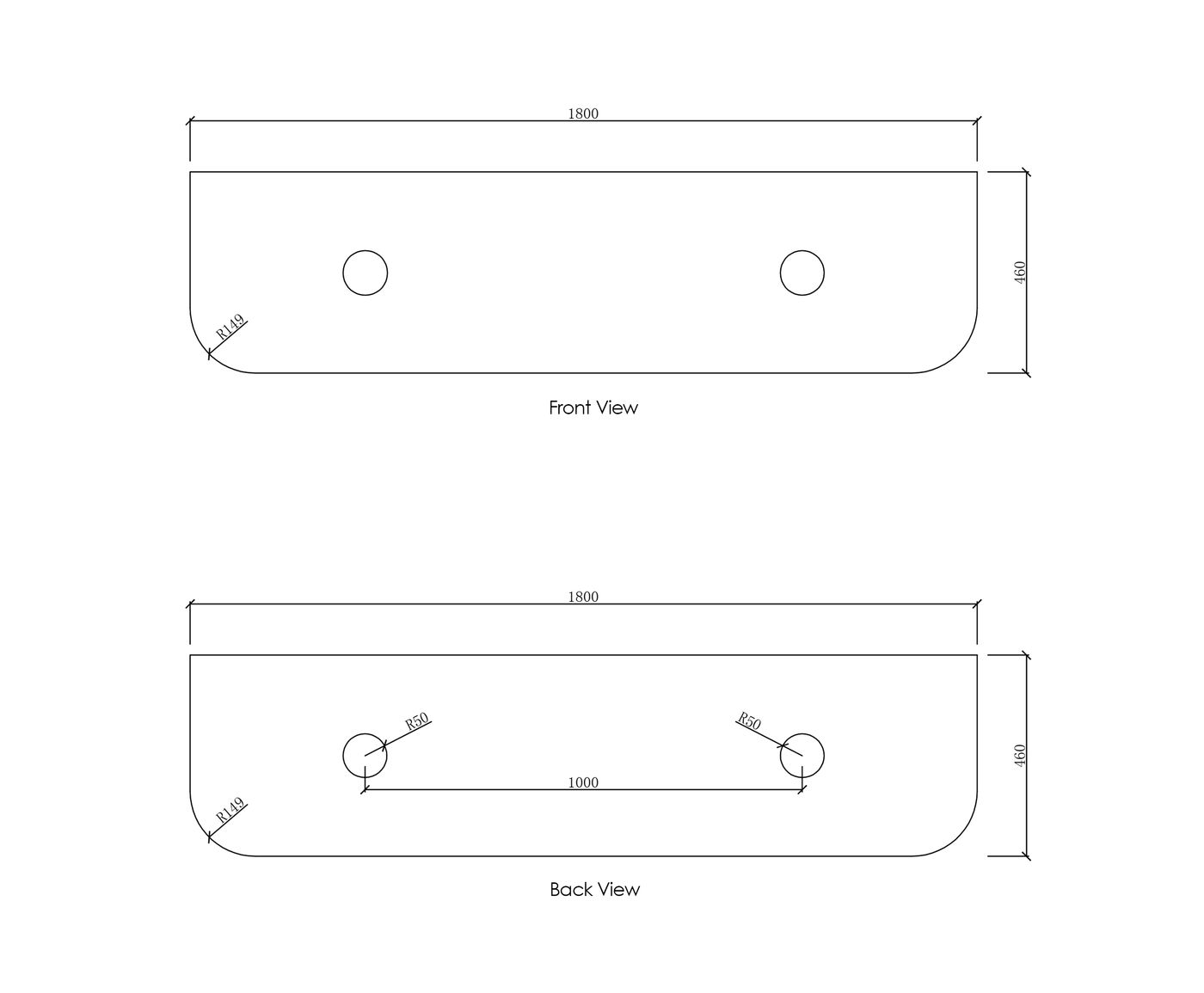 Dimensions 1800x450x450mm
