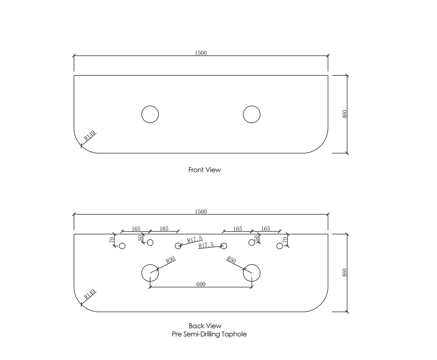 | Single Basin | This cabinet is only suitable with Left or Right Setout for single basin. Should you require Single basin, please email us your specification stone top colour with No Holes code-NH |