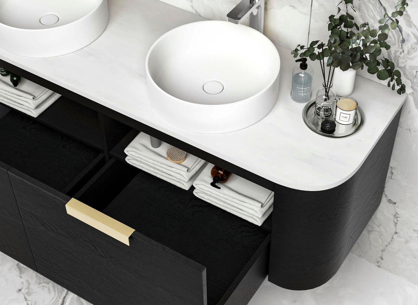 Bondi 1500mm Black Oak Wall Hung Curve Vanity