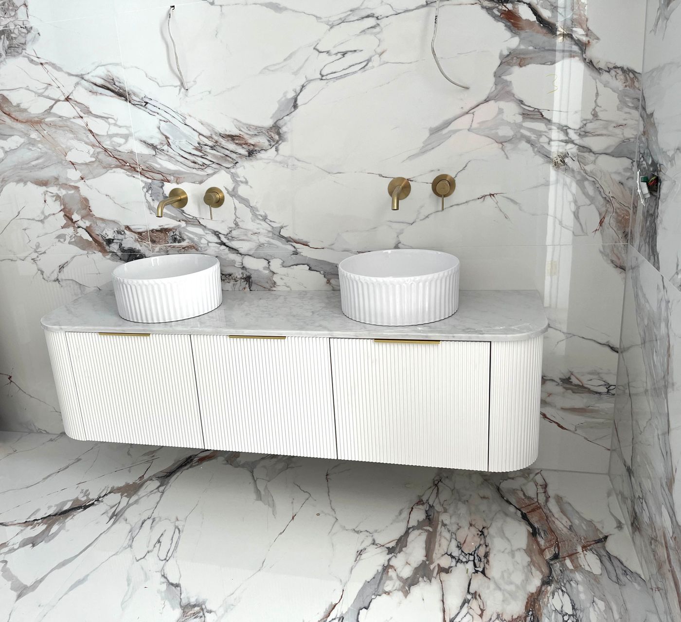 Bondi 1800mm Satin White Fluted Wall Hung Curve Vanity