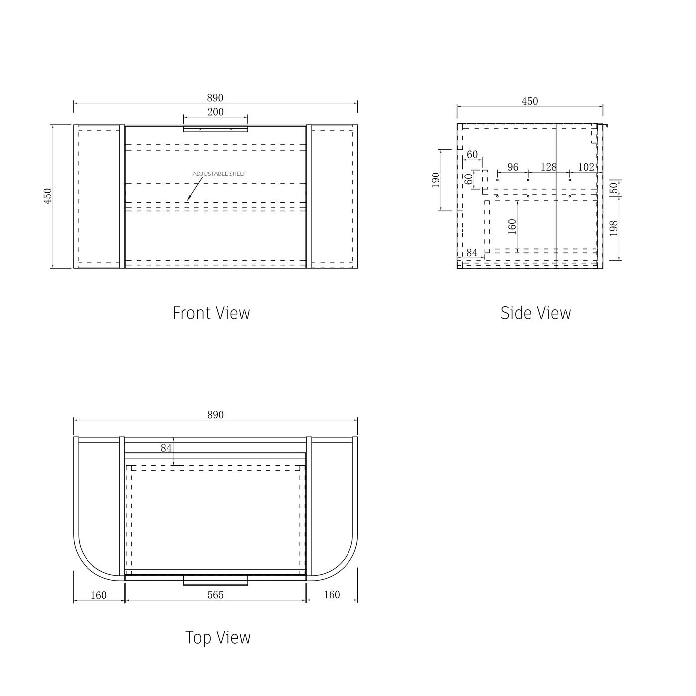 | Cabinet Dimensions | 890(L)x450(W)x450(H)mm |