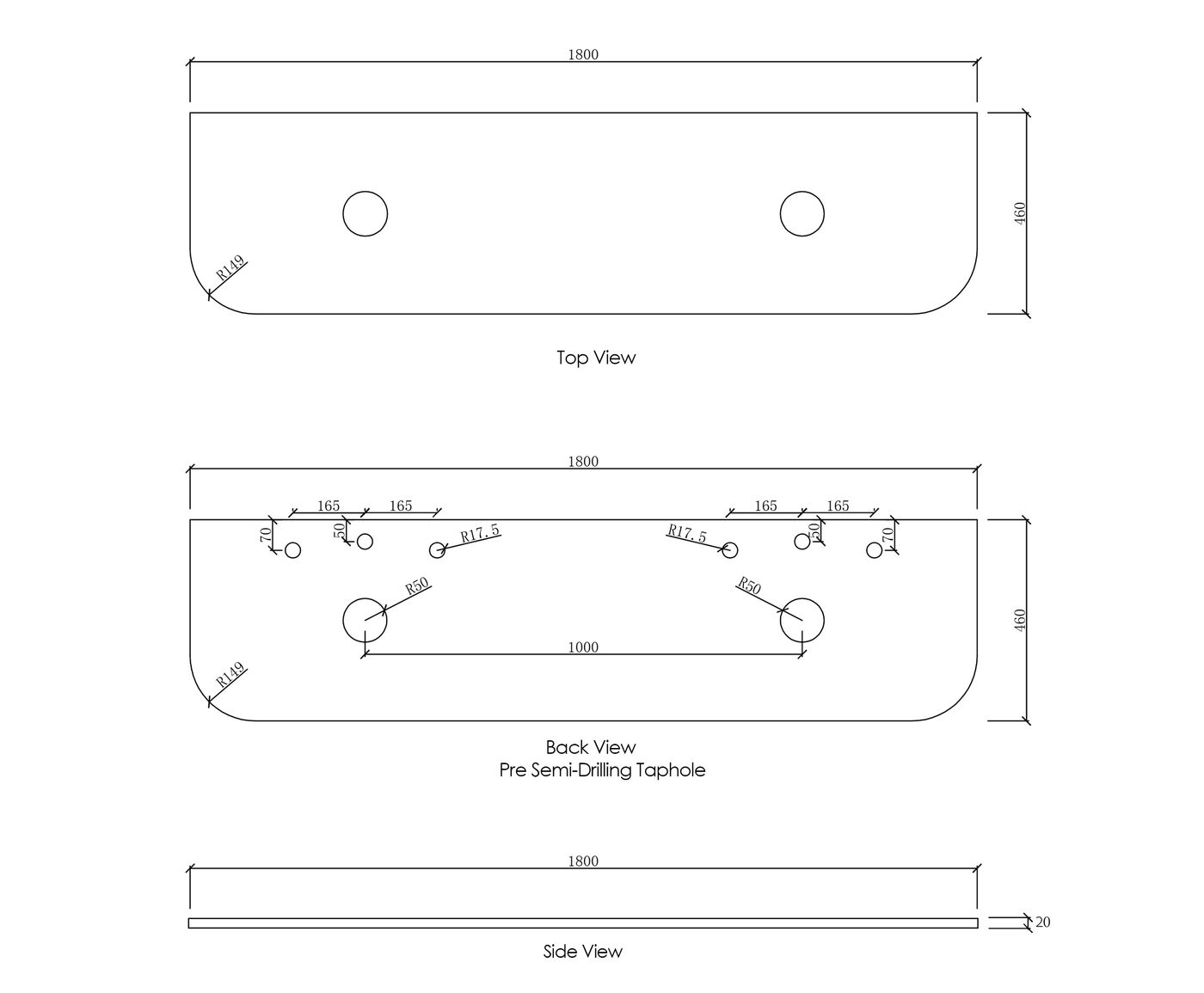 | 1800 Bondi Vanity | Package Size mm | Gross Weight kg | ||