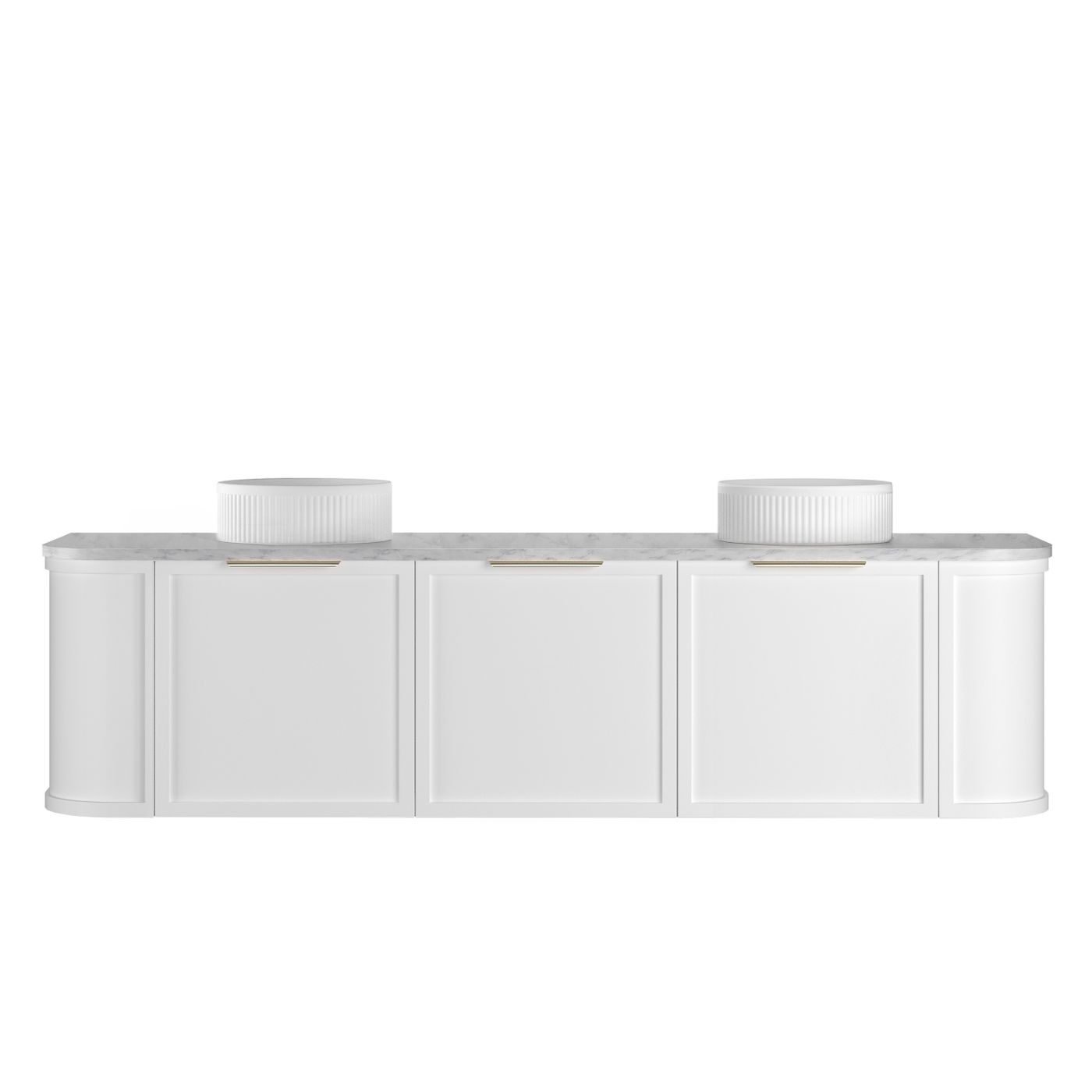 Hampshire 1800mm Satin White Wall Hung Curve Vanity with Natural Carrara Marble Top