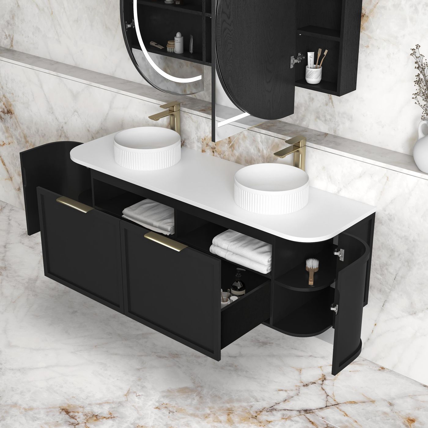 Hampshire 1500mm Satin Black Wall Hung Curve Vanity