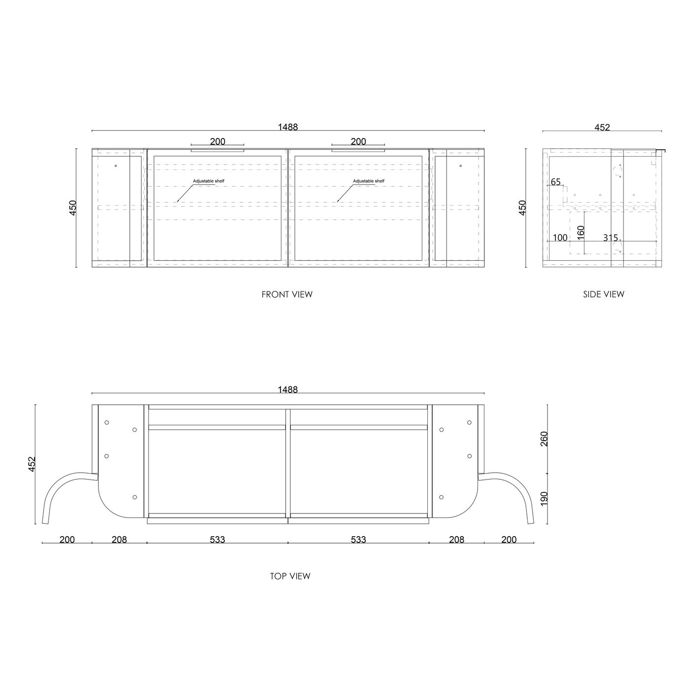 | Drawers | 2 Drawers Soft Closing, 2 Adjustable Shelves |