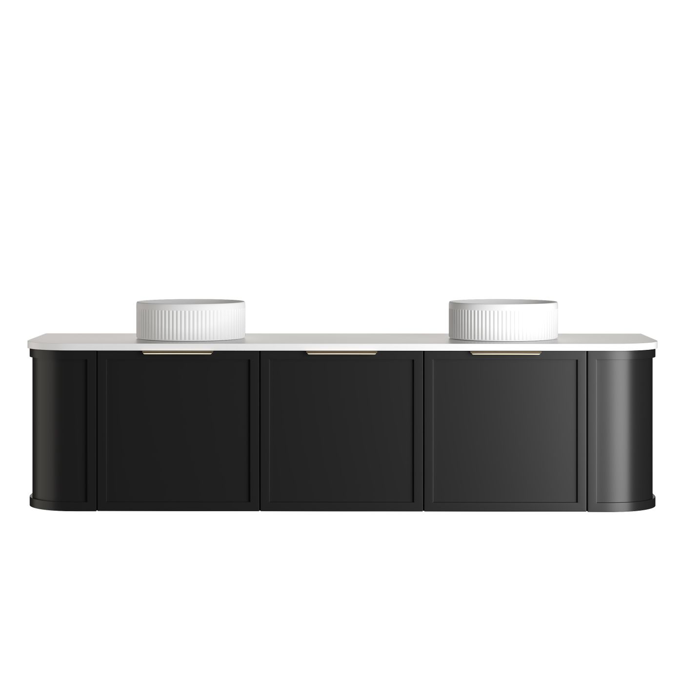 Hampshire 1800mm Satin Black Wall Hung Curve Vanity with Pure White Top