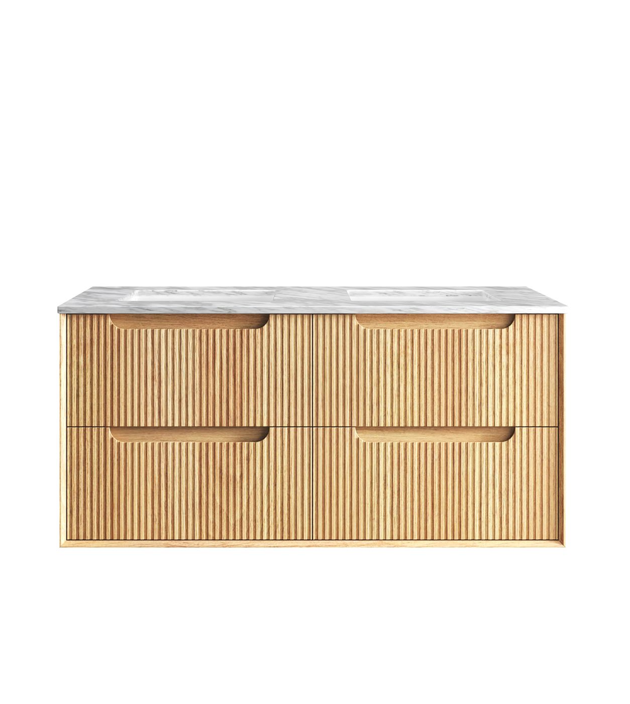 Byron Fluted 1200mm Woodland Oak Four Drawer Wall Hung Vanity