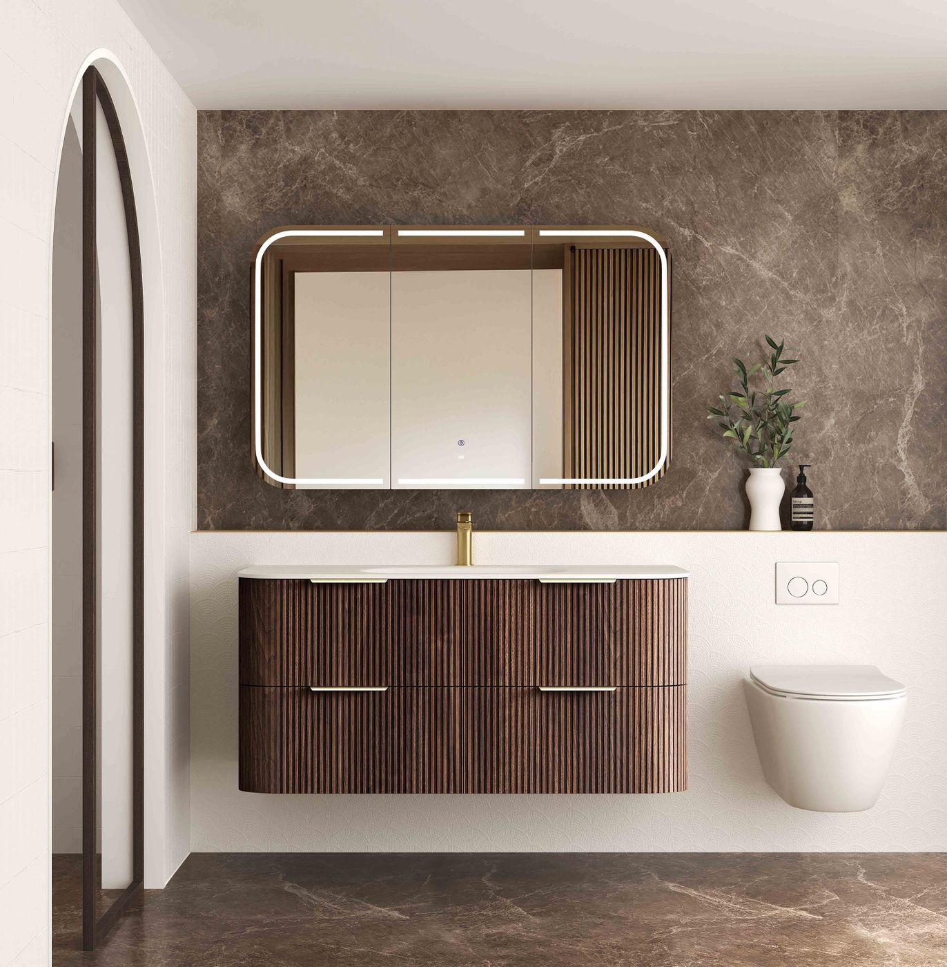 Havana 1200mm Sable Walnut Fluted Wall Hung Curve Vanity with Chloe Silk Top