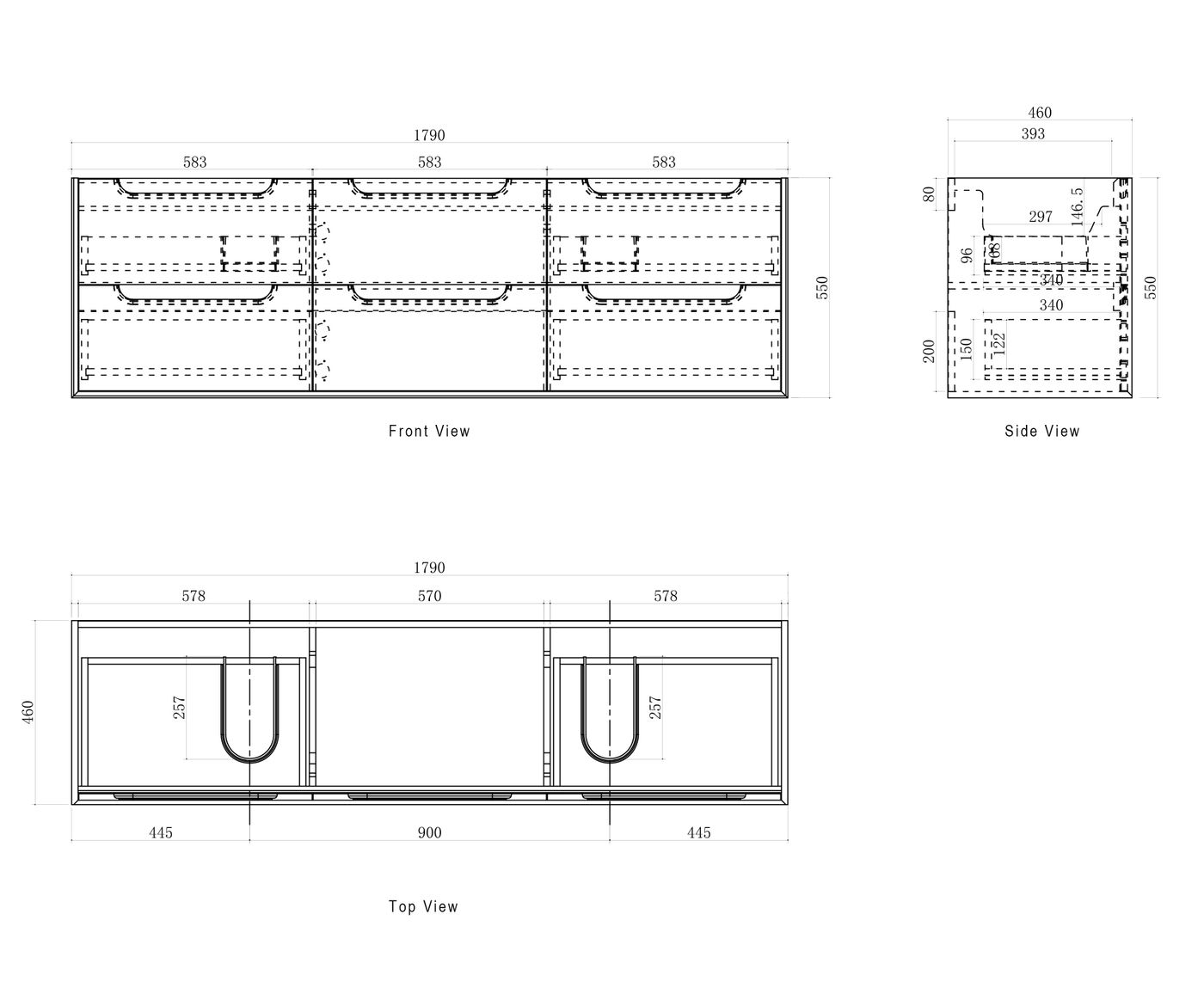 Dimensions 1790x460x550mm