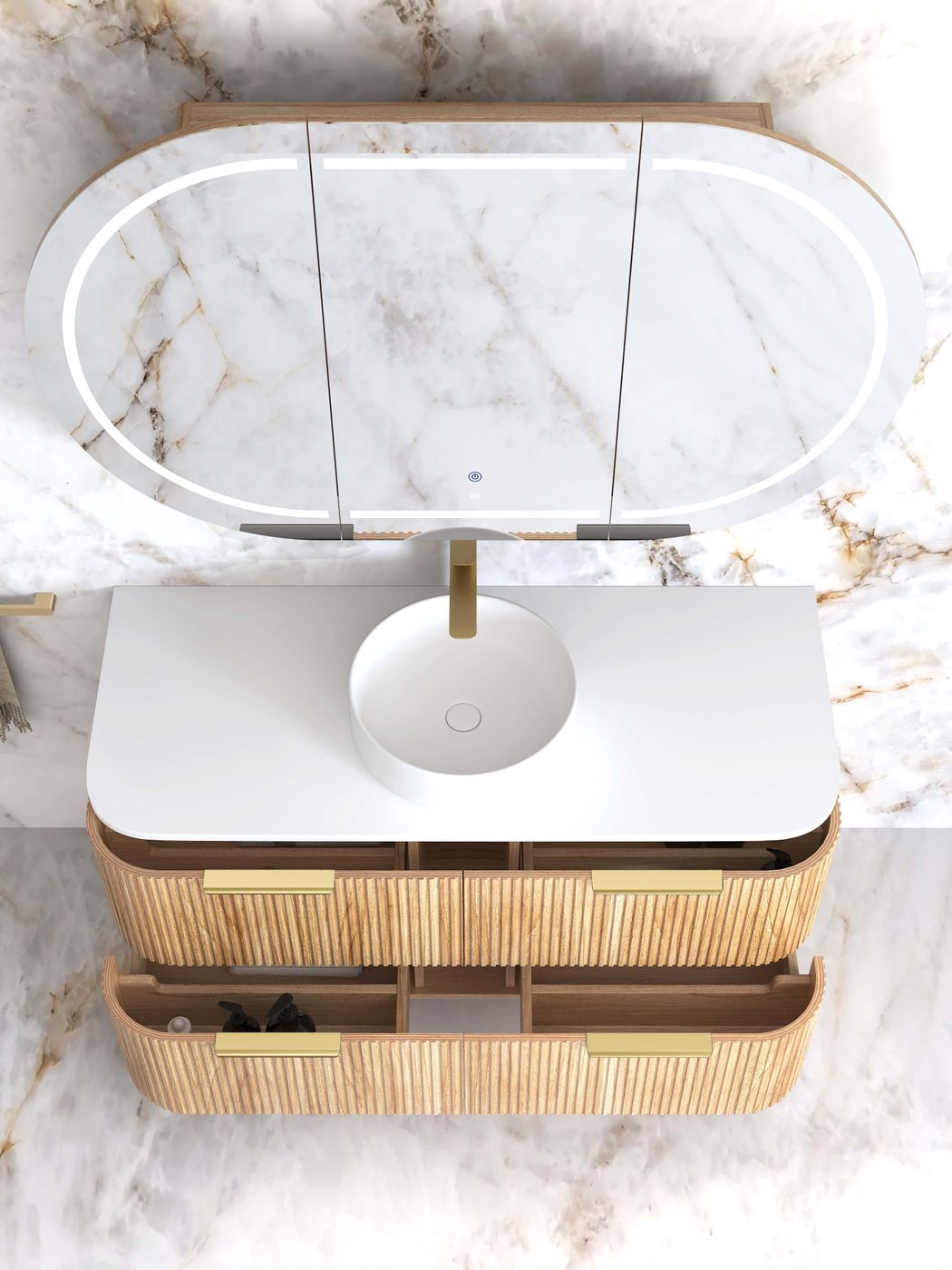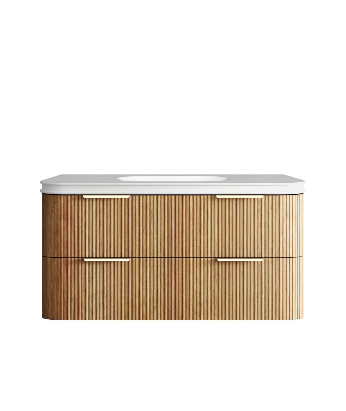 Havana Fluted 1200mm Woodland Oak Wall Hung Curve Vanity