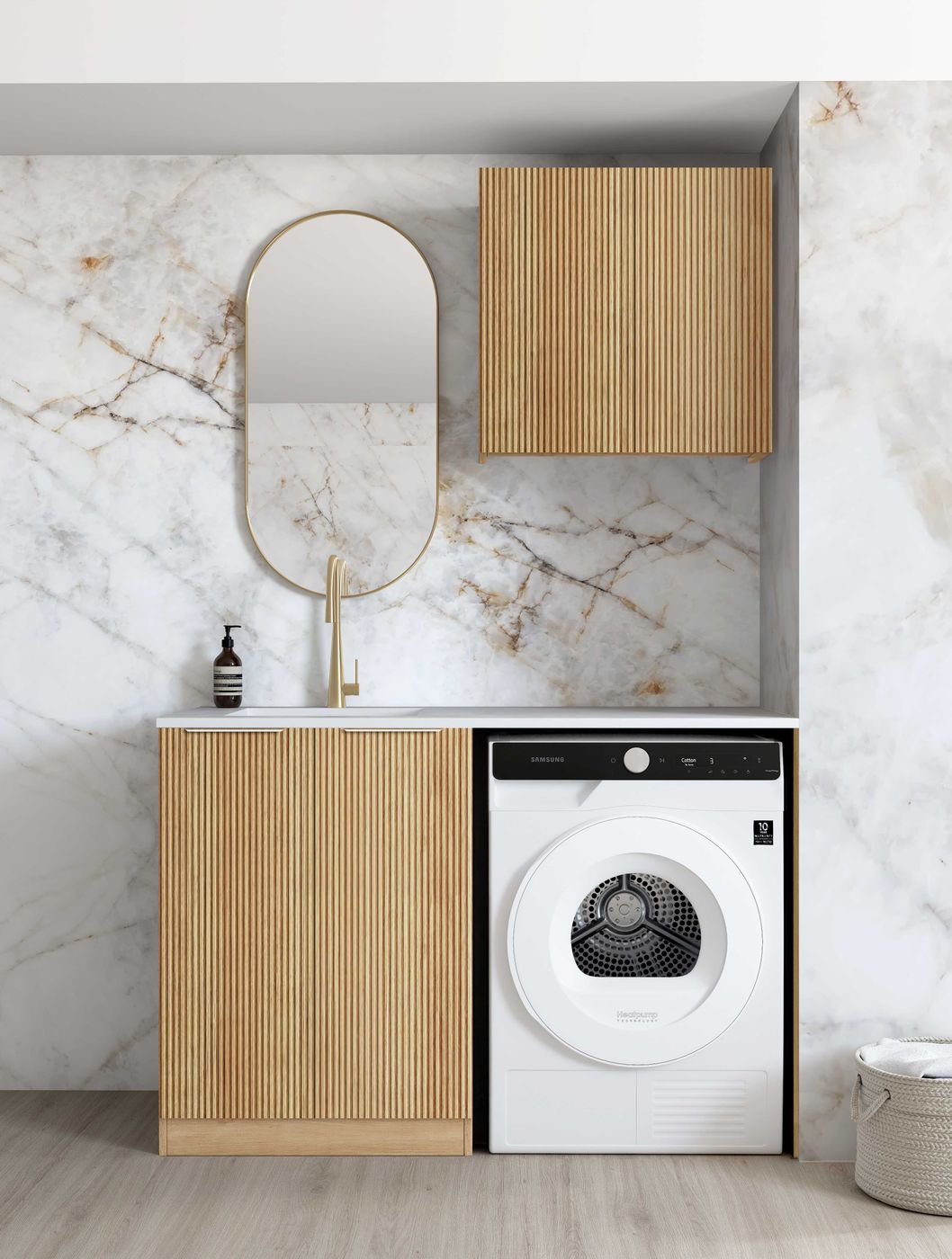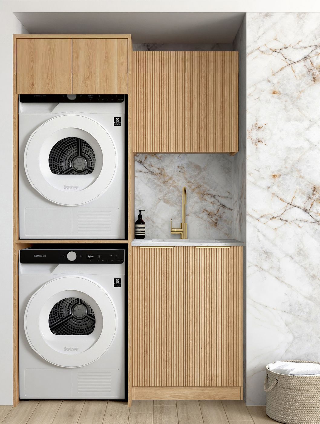 Laundry Kit 1305C Havana Fluted Woodland Oak with Cloudy Carrara Top