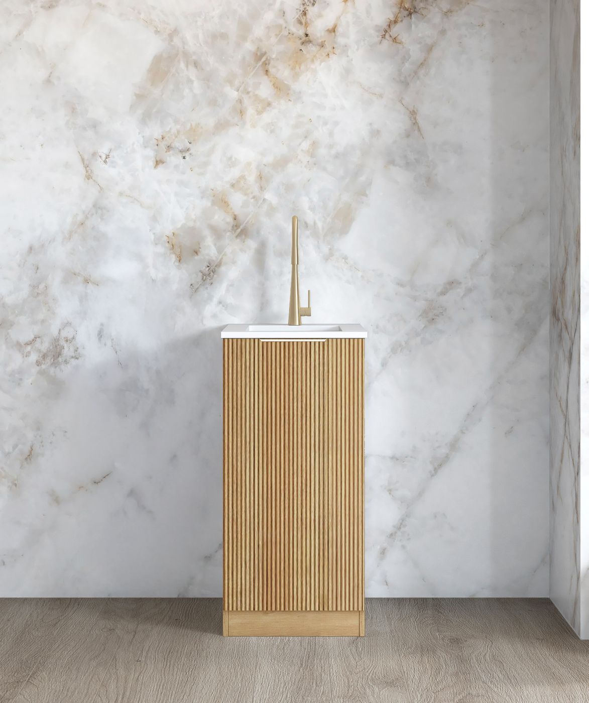 Mini Laundry 430mm Havana Fluted Woodland Oak with Pure White Top